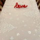 La nappe alphabet abécédaire Paris avec des coeurs mesure 3m x 1m48, elle est anti tache et sans repassage.