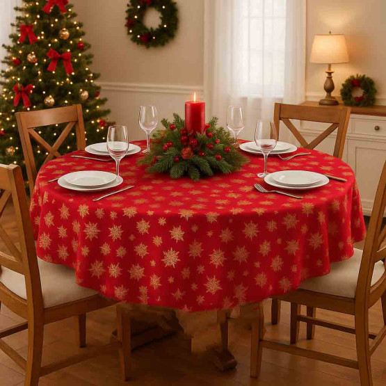La nappe ronde vichy rouge mesure 1m80, elle est anti tache et sans repassage.