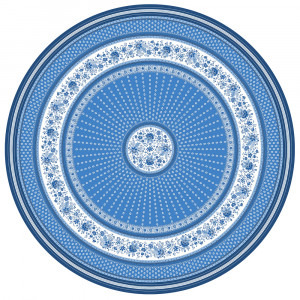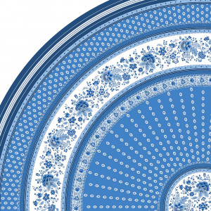 La nappe ronde 1m80 Sormiou jaune bleu est 100% coton . Elle se lave en machine .