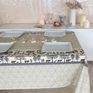 Faites briller votre table avec la nappe home sweet home et ses magnifiques cœurs et animaux de montagne.