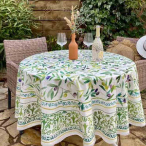 Apportez une touche de soleil à votre décoration avec cette nappe ronde au motif d’olivier, inspirée de l’art de vivre provençal. Son imprimé délicat de feuilles et d’olives aux teintes naturelles habille votre table avec élégance et authenticité.