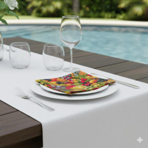 Serviette de table Fruits en coton imprimé – 40 x 40 cm – Un motif coloré et gourmand pour une table pleine de vitalité.